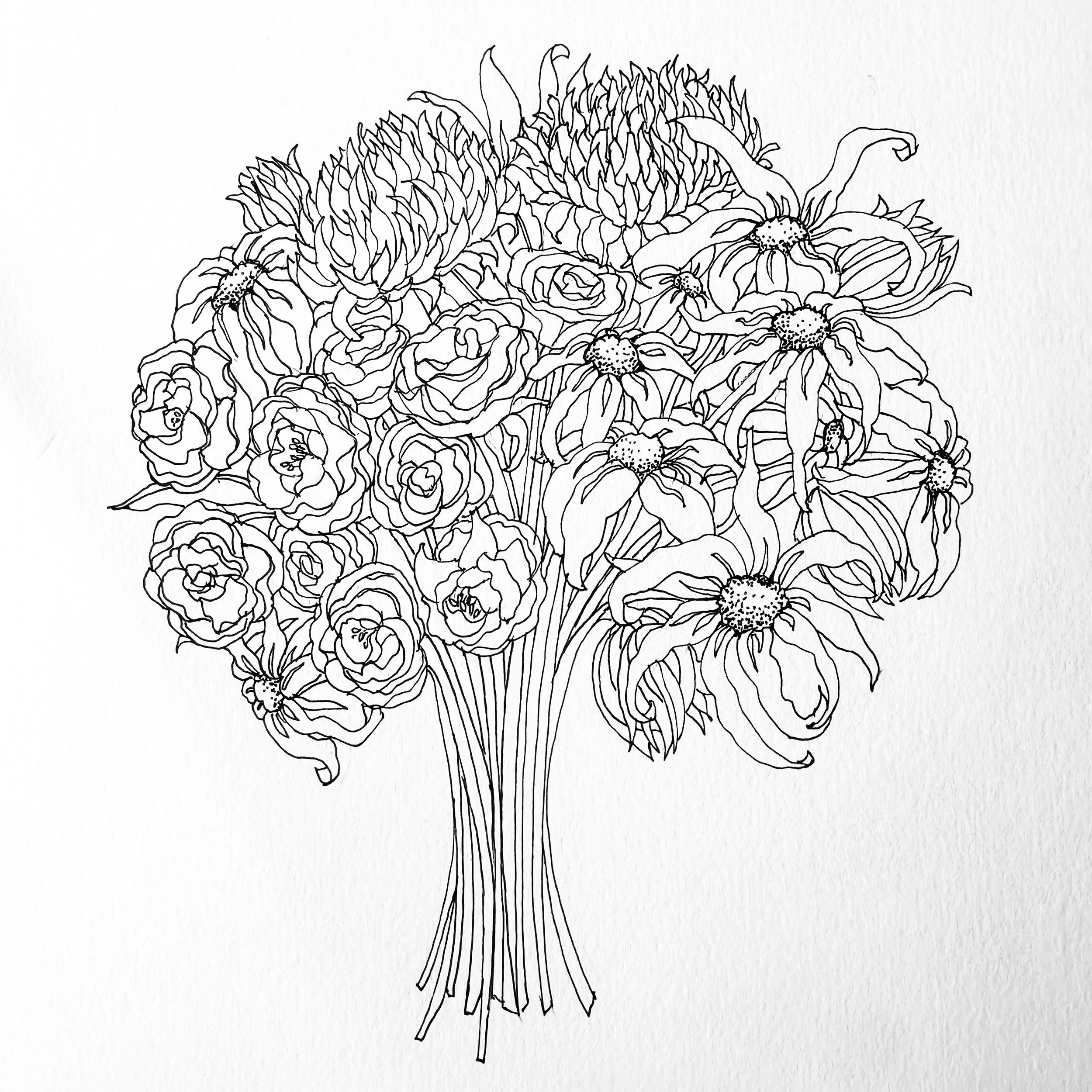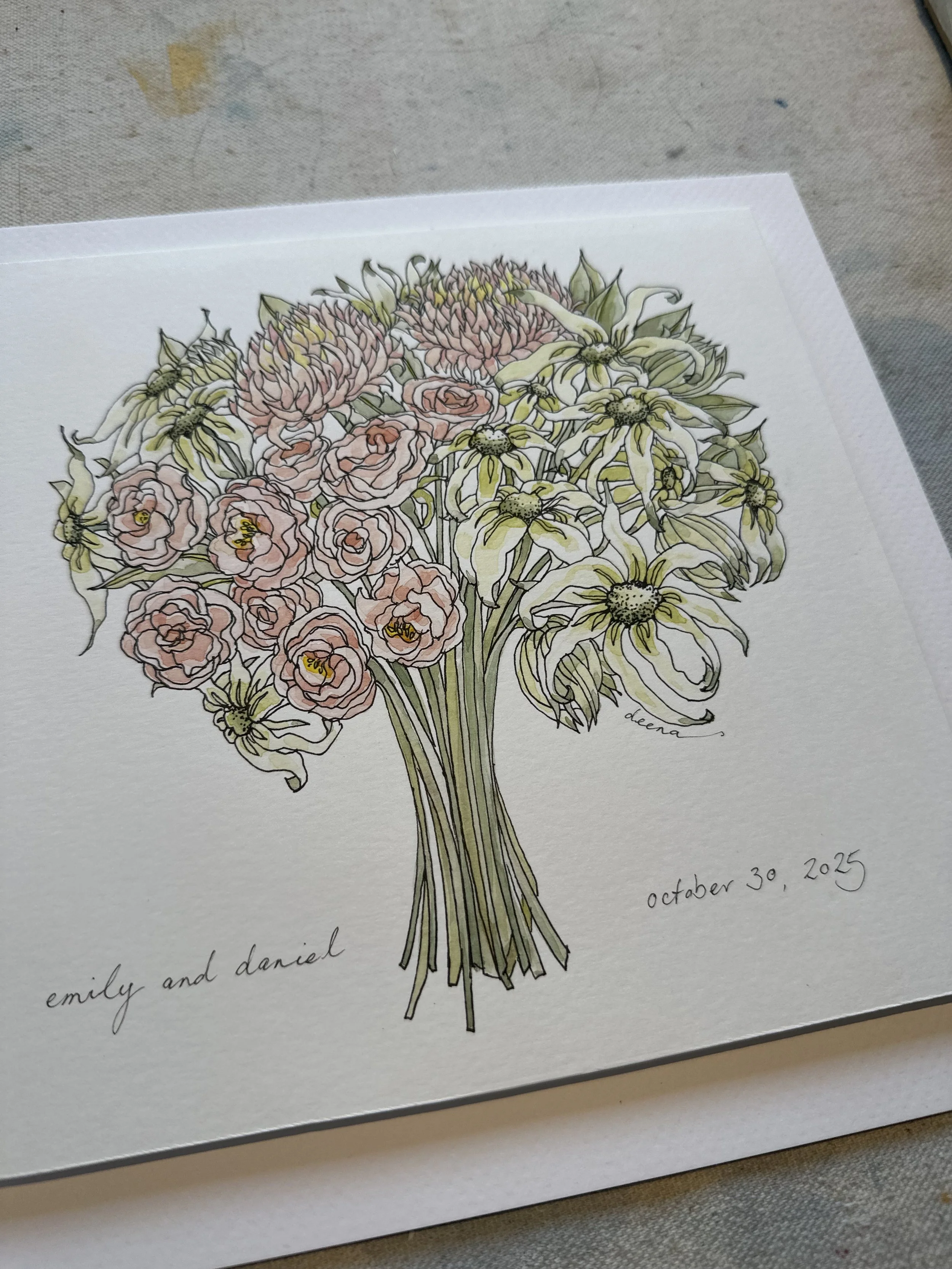 Working from photographs of your wedding flowers, I carefully illustrate your bouquet in my own distinctive style to capture its form, palette, and individual beauty
